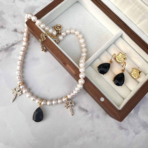 Enchant Gold Plated Large Pearl Cross Pendant/Charm