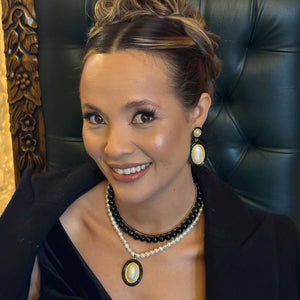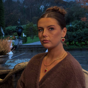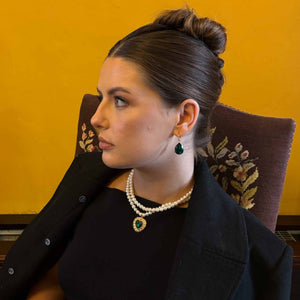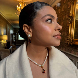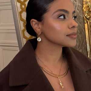 Noctura by Enchant: after-dark jewelry in polished gold with luminous crystals and pearls. Layerable hoops, charms, and pendants for quiet luxury nights.